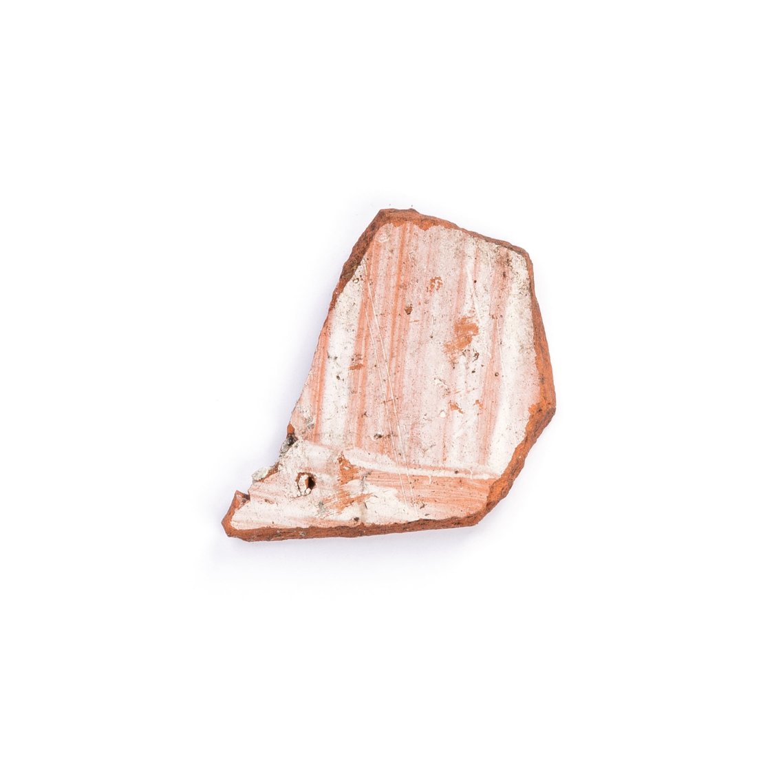 You can see the action of the brushstrokes on this piece of terracotta, which instantly takes my imagination right back to the person who originally painted it. It may be a white clay ‘slip’ that they have brushed on, known as terra sigillata, in which the particles have been ground to nano-size. When baked on, it forms a smooth and much less porous surface, useful for this purpose, the fragment is probably an old sewer-pipe.